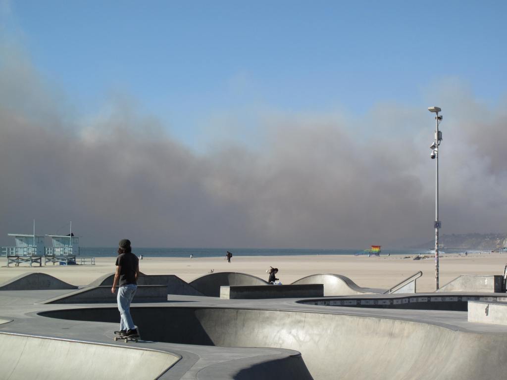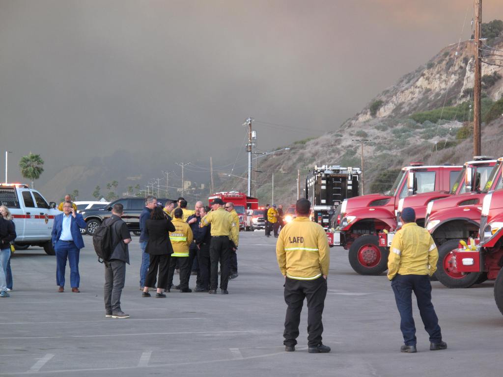 As I approached Temescal, the sky darkened and sirens blared. LA fire established their base of operations in a beach parking lot.