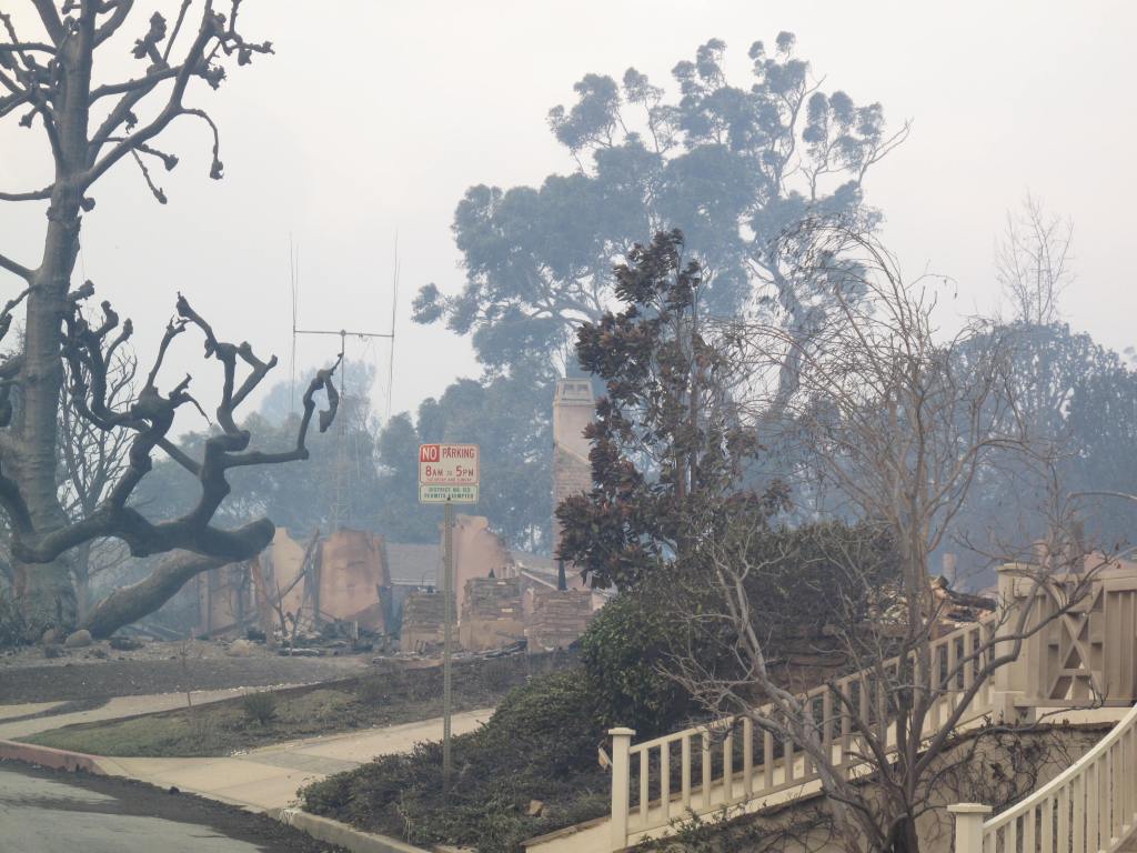I saw no emergency vehicles, no first responders, no residents. The air quality was terrible and my eyes started hurting from the smoke. I considered turning around. But I felt compelled to continue riding and see if Rustic Canyon and Will Rogers survived the fires.